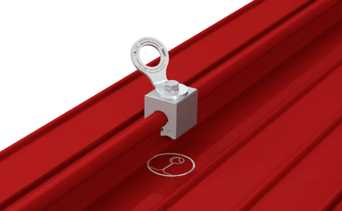 Det diskrete ankerpunkt af aluminium klemmes fast på rundbertlingsfalsen uden at trænge igennem. Dens drejelige ankerøje i rustfrit stål sikrer 1 person imod fald. Grundet den særligt ukomplicerede montage egner denne faldsikringsordning sig godt til temporær anvendelse.