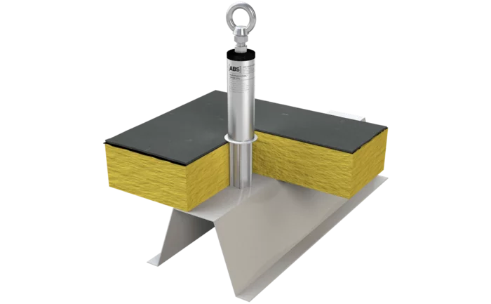 Dette tagskånende ankerpunkt af rustfrit stål monteres med kun en enkelt special vippedyvel (medfølger ved levering) på trapezplader. Støtterøret (Ø 42 mm) på denne fastgørelsesanordning udfylder den nødvendige åbning til montage i isoleringen | så det er helt tæt efter montering.