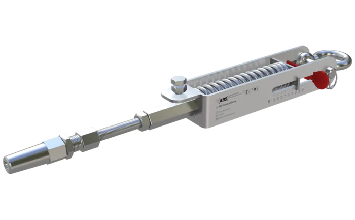 Med denne endefastgørelse af rustfrit stål til wiresikringssystemer af typen ABS-Lock SYS (6 und 8 mm) udligner du varmeudvidelser. Spændeelementer fremstillet af V4A-stål har en fjederforspænding og er optaget i de generele byggetilsyns tilladelser fra DIBt.