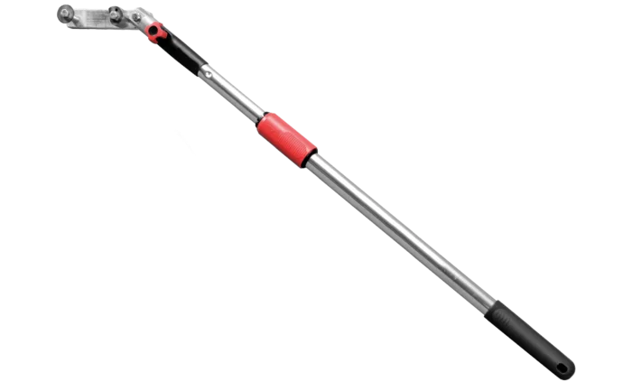 Med den udtrækkelige teleskopstang kan du nå vanskeligt tilgængelige ankerpunkter fra en sikker position | for eksempel fastgørelsesanordninger | der er placeret i taget over vinduerne. Teleskopstangen har en anordning til ophæng og nedtagning af karabinhagerne i dit PSAgA.