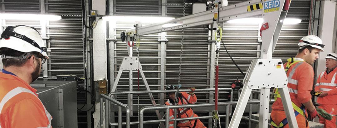 REID Liftings innovative Porta-Gantry-løsninger giver dig mulighed for at hejse både materialer, udstyr og dig selv ned i f.eks. tanke eller andre confined space-områder (områder med begrænset plads).